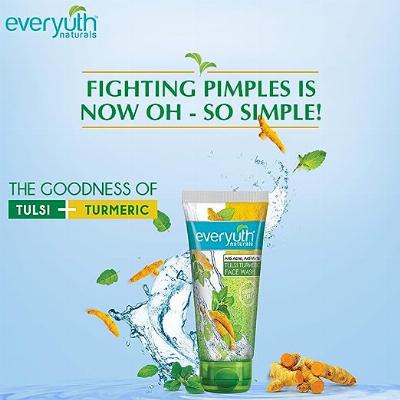 - Everyuth Naturals Tulsi Turmeric Face Wash helps reduce marks, blemishes and dark spots.